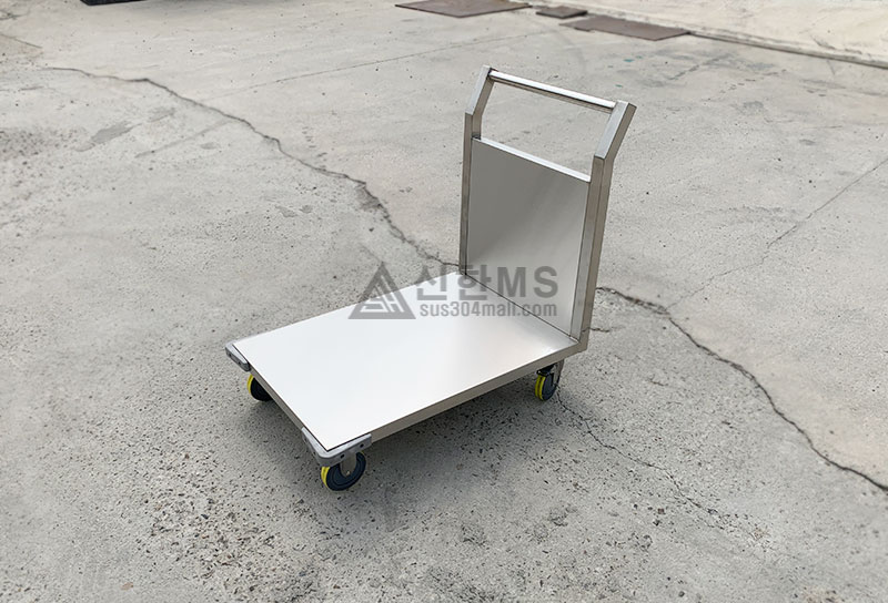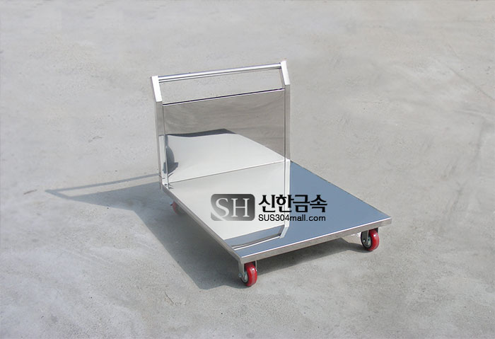 아래의 스텐카트 형태는 L106에서 보다 단순하게 변경된 형태 입니다. 제작비용이 조금 낮아지는 장점이 있는 반면 밀고 다닐때 발이 카트에 부딪히지 않도록 조심할 필요가 있습니다. 대부분 카트의 손잡이가 굴곡지며 밖으로 빠져 있는 것은 밀고, 끌때 발이 카트와 부딪히는 것을 방지하는 목적이 크거든요. 보통 이런 형태는 단순히 가격을 낮추려는 목적이 아니라 다른 테이블이나 캐비닛같은곳에 카트를 딱 밀어 넣고 손잡이가 추가적으로 돌출되지 않기를 바란다던지 하는 목적성이 있는 경우가 더 많습니다.